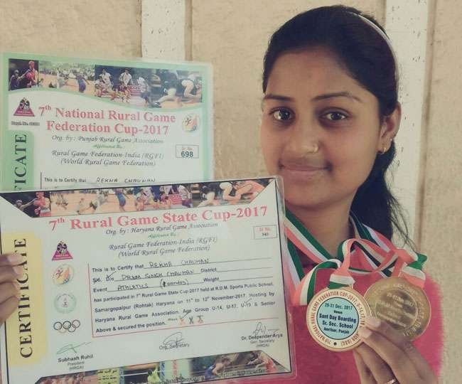 बीते 29 से 31 दिसंबर तक अमृतसर में हुए सातवें नेशनल रूरल गेम्स फेडरेशन कप में सभी प्रतिद्वंद्वियों को परास्त कर रेखा ने गोल्ड मैडल हासिल किया। रेखा ने महज 12 सेकेंड में 100 मीटर की दौड़ पूरी की। वर्तमान में भारत की ओर से 100 मीटर दौड़ सबसे कम 11.30 सेकेंड में पूरा करने का रिकार्ड दुति चंद के नाम है। उसके बाद रेखा का ही स्थान है।