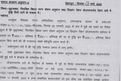 देहरादून : उत्तराखंड में वृद्धावस्था पेंशन योजना के अंतर्गत अब पति और…
