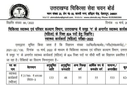 उत्तराखंड चिकित्सा सेवा चयन बोर्ड ने चिकित्सा स्वास्थ्य एवं परिवार कल्याण विभाग,…