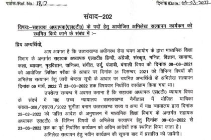 उच्च न्यायालय के अग्रिम आदेश आने तक सहायक अध्यापक एलटी अभिलेख सत्यापन का कार्य स्थगित