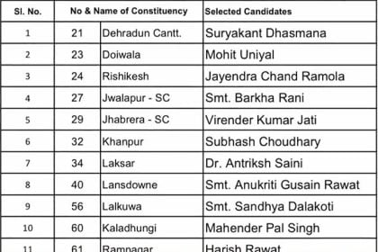आखिरकार उत्तराखंड कांग्रेस ने 53 उम्मीदवारों की पहली सूची जारी कर दी…