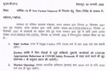 कोविड-19 के नए वैरिएंट Omicron के नियंत्रण हेतु उत्तराखण्ड शासन द्वारा दिशा-निर्देश…