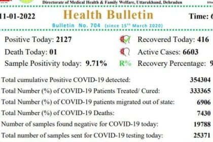 उत्तराखंड में मिले 2127 कोरोना पाॅजिटिव, एक की मौत