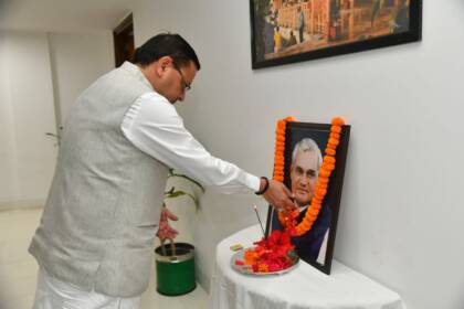 मुख्यमंत्री धामी ने पूर्व प्रधानमंत्री स्व. अटल बिहारी वाजपेई की पुण्य तिथि पर पुष्पांजलि अर्पित कर श्रद्धांजलि दी