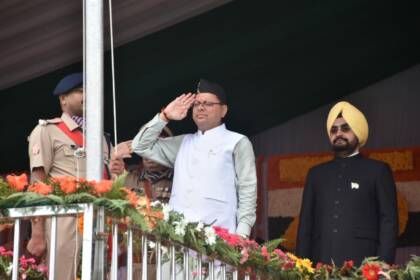 मुख्यमंत्री पुष्कर सिंह धामी ने परेड ग्राउण्ड में ध्वजारोहण किया