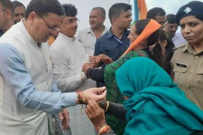 सीमांत गांव मंच में हर घर तिरंगा अभियान में शामिल हुए सीएम धामी, महिलाओं ने बांधी राखी