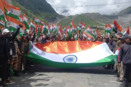 श्री केदारनाथ धाम में मानव श्रृंखला बनाकर कर तिरंगा रैली का आयोजन किया गया