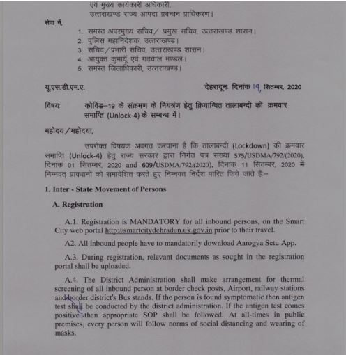 चारधाम यात्रा के आखिरी पड़ाव में राज्य सरकार ने प्रदेश में आने वाले यात्रियों के लिए जारी दिशा निर्देश में संशोधन किया है। जारी किये गए दिशा निर्देश 21 सितम्बर से लागू होंगे जिसमे पर्यटकों को काफी रियायत दी गई है।