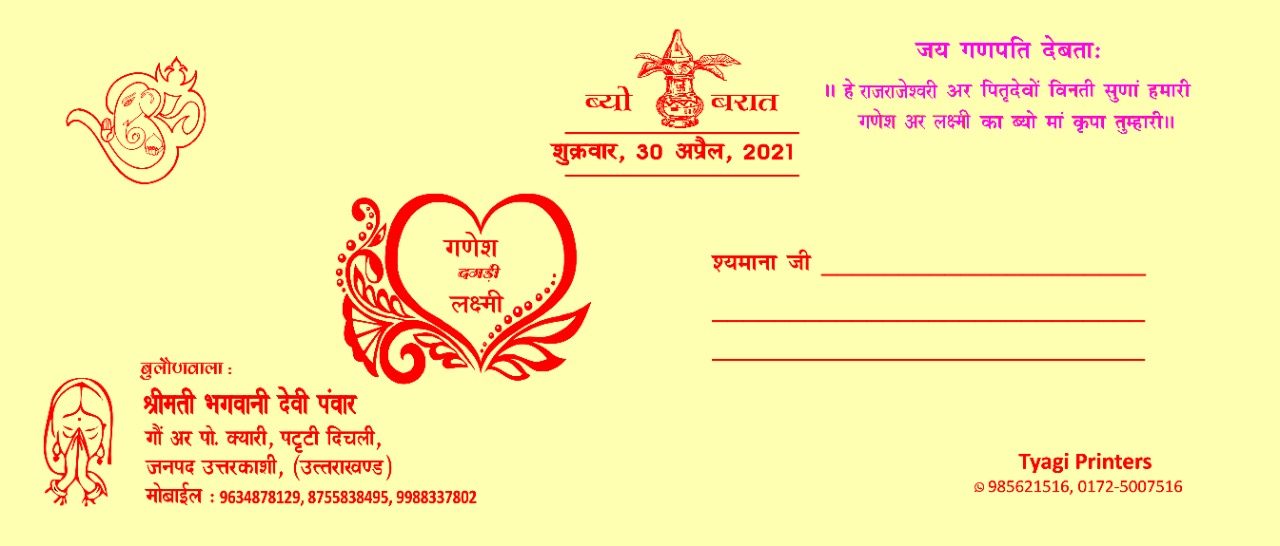 जहाँ आजकल लोग अपनी शादी का कार्ड अंग्रेजी में छपवाने पर गर्व करते थे। वही दूसरी तरफ हमारी भाषा गढ़वाली-कुमाउनी की मधुरता लोग भूलते जा रहे हैं। ऐसे समय में कुछ युवाओं ने इस ट्रेंड को बदलना शुरू कर दिया है और वह अपना शादी का कार्ड अपनी लोकल भाषा में छपवाने लगे हैं।