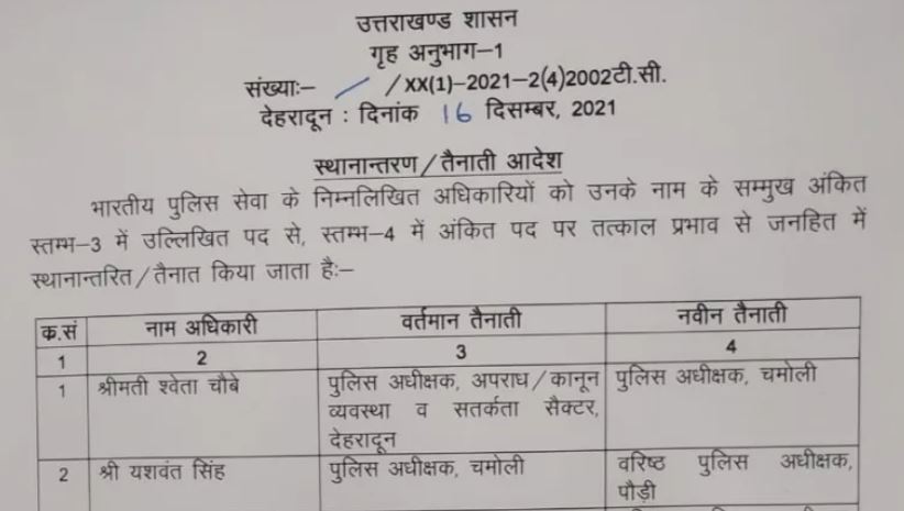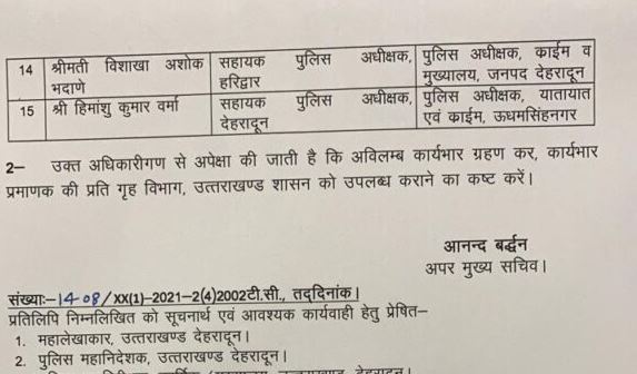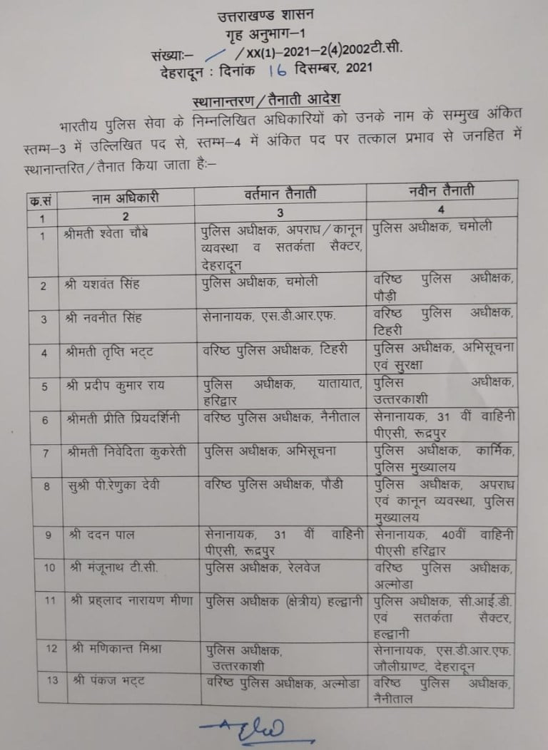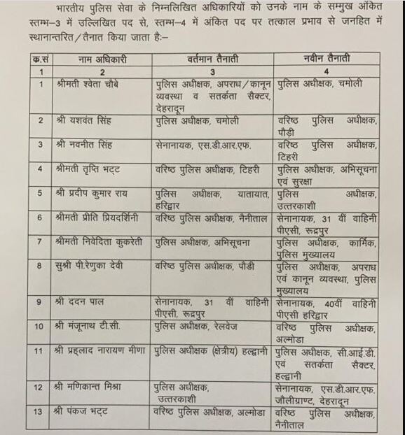 बड़ी खबर : उत्तराखंड में वरिष्ठ पुलिस अधिकारियों के बंपर तबादले