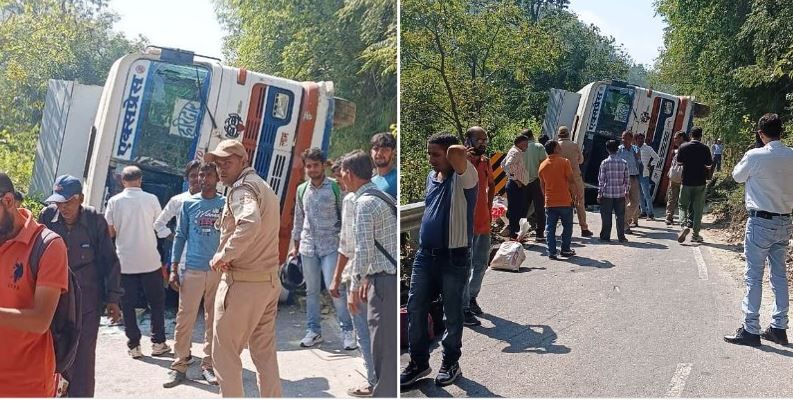 पौड़ी गढ़वाल : फतेहपुर से लगभग 500 मीटर आगे गुमखाल पौड़ी राष्ट्रीय राजमार्ग पर एक बस पलट गयी। हादसे में कुछ लोगों को चोटें आई हैं जानकारी के अनुसार, बस संख्या UK15 PA-5252 थलीसैंण से कोटद्वार की तरफ जा रही थी जो करेखाल मोड़ पर अचानक सड़क पर पलट गई। चौकी प्रभारी दुगड्डा पुलिस को जैसे ही हादसे की सूचना मिली तो मौके पर बचाव कार्य संबंधी उपकरणों के साथ पहुंचे। बताया जा रहा है कि गाडी के ब्रेक फ़ैल गए थे जिसके बाद हादसा हो गया ड्राइवर को हल्की चोटें आई हैं सभी यात्री सुरक्षित हैं।