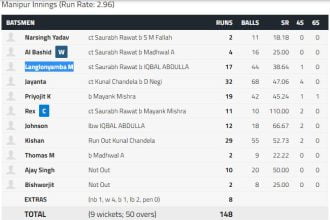 मणिपुर ने उत्तराखंड को जीत के लिए 149 का लक्ष्य दिया