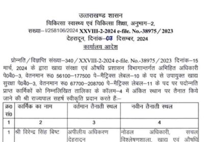 उत्तराखंड खाद्य संरक्षा एंव औषधि प्रशासन विभाग में बड़ा प्रशासनिक फेरबदल