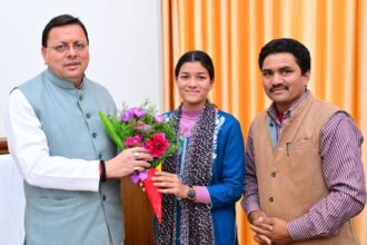 मुख्यमंत्री धामी से गैरसैंण (भराड़ीसैंण) में मुख्यमंत्री आदर्श ग्राम सारकोट की ग्राम प्रधान प्रियंका नेगी ने भेंट की