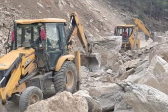 उत्तराखंड में बदरीनाथ हाई-वे पर बलदौडा के पास सडक निर्माण में लगी…