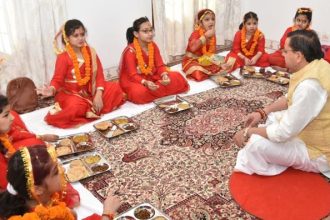 मुख्यमंत्री ने नवमी के पावन अवसर पर मुख्यमंत्री आवास में विधि-विधान से कन्या-पूजन किया