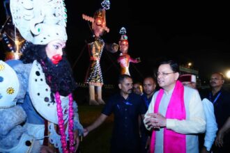 सीएम धामी विजयदशमी पर लक्ष्मण चौक, देहरादून में आयोजित दशहरा महोत्सव व रावण दहन में हुए शामिल
