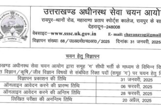 उत्तराखण्ड अधीनस्थ सेवा चयन आयोग ने उत्तराखंड में अनेक विभागों के अन्तर्गत…