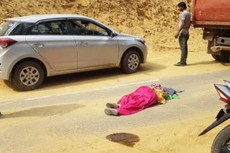 दर्दनाक हादसा: मिट्टी में फिसल गयी बाइक और फिर महिला का सिर कुचल निकल गया डंपर मौत