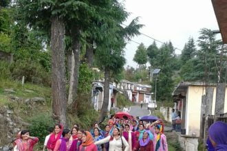 जखोली ब्लोक रूद्रप्रयाग में शराब की दुकान खोले जाने के विरूध मे महिलाओं का पर्दशन