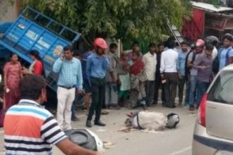 रिस्पना पुल के पास बेकाबू ट्रक ने बाइक सवार को कुचला मौत, मृतक की पत्नी घायल