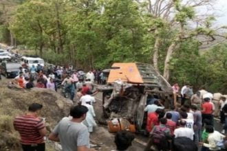 नैनीताल में पहाड़ से टकराकर सड़क पर पलटी बस 1 की मौत 22 घायल