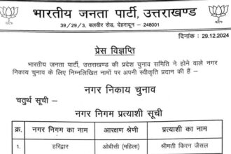 देहरादून: भाजपा ने मेयर पद के लिए 6 प्रत्याशियों की घोषणा कर…