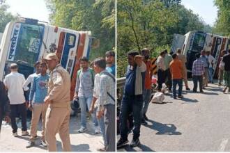 गुमखाल पौड़ी राष्ट्रीय राजमार्ग पर पलटी बस, घायलों को भेजा अस्पताल