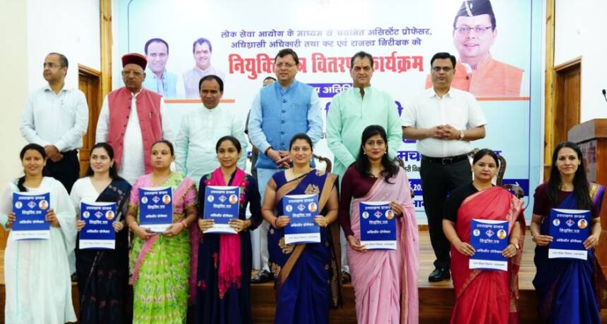देहरादून : मुख्यमंत्री पुष्कर सिंह धामी ने सोमवार को मुख्यमंत्री आवास स्थित मुख्य सेवक सदन में आयोजित कार्यक्रम में उत्तराखण्ड लोक सेवा आयोग के माध्यम से उच्च शिक्षा विभाग में चयनित 68 असिस्टेंट प्रोफेसर, शहरी विकास विभाग में चयनित 63 अधिशासी अधिकारी एवं 22 कर व राजस्व निरीक्षकों को नियुक्ति पत्र प्रदान किए।