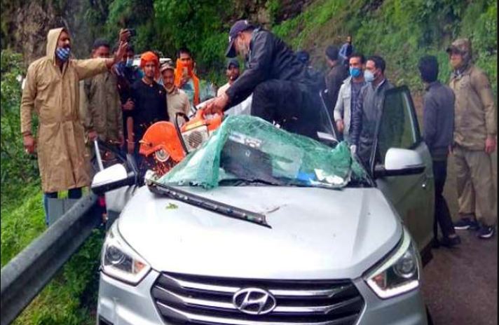 बरसात के समय पर पहाड़ों का सफर खतरों से भरा हो जाता है। गुड़गांव से पत्नी के साथ नैनीताल घूमने आए एक व्यक्ति की कार में बोल्डर गिरने से मौत हो गई जबकि उसकी पत्नी घायल हो गयी। जानकारी के अनुसार, घटना मंगलवार को हुई जब नैनीताल के बजून क्षेत्र में बुड्ढा पहाड़ के समीप पहाड़ी से गिरे पत्थर की चपेट में चकरपुर गुड़गांव के 56 वर्षीय हनुमंत तलवार की कार आ गई। जिसमे उक्त व्यक्ति की मौके पर ही मौत हो गई जबकि गंभीर रुप से घायल उनकी पत्नी 55 वर्षीय मीना तलवार को 108 स्वास्थ्य सेवा से नैनीताल के बी.डी.पांडे अस्पताल पहुंचाया गया।