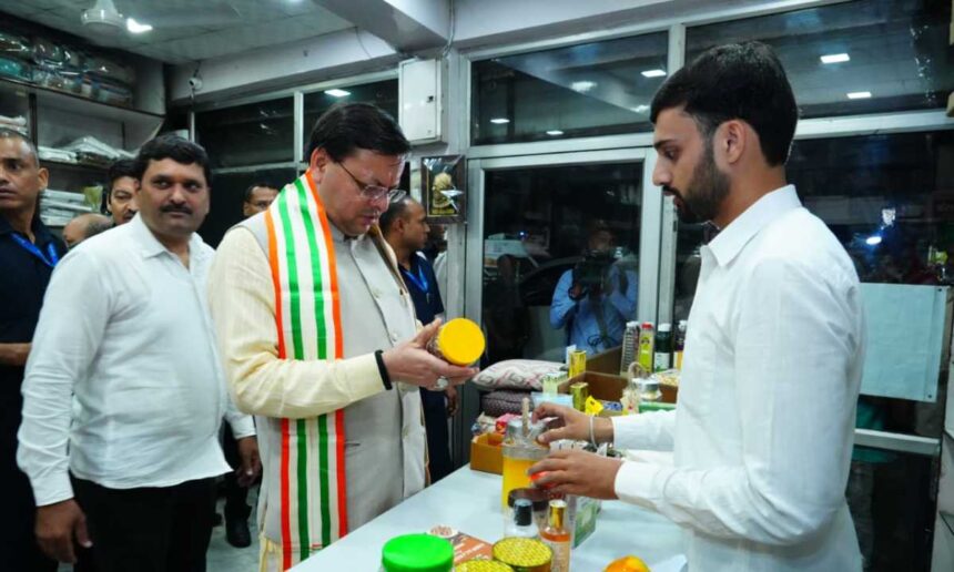 मुख्यमंत्री पुष्कर सिंह धामी ने देहरादून के चकराता रोड स्थित खादी ग्रामोद्योग भवन से सामान खरीदा