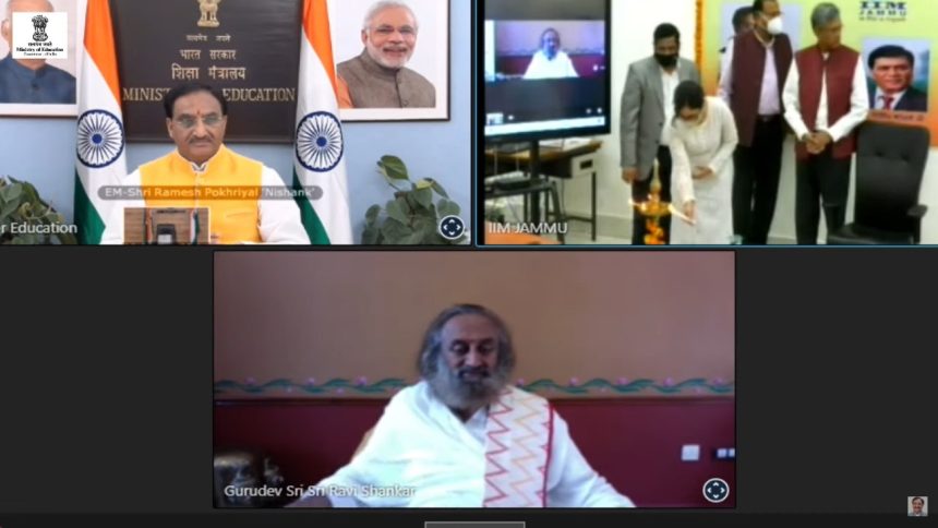 केंद्रीय शिक्षा मंत्री रमेश पोखरियाल निशंक ने आज वर्चुअल माध्यम से “आनंदम : द सेंटर फॉर हैप्पीनैस” का उद्घाटन किया। इस अवसर पर जम्मू-कश्मीर के उपराज्यपाल मनोज सिन्हा और आर्ट ऑफ लिविंग फाउंडेशन के संस्थापक श्री रविशंकर भी उपस्थित थे।