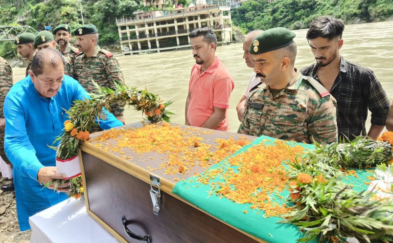 रुद्रप्रयाग: जनपद रुद्रप्रयाग के तहसील रुद्रप्रयाग के ग्राम पंचायत जवाड़ी भरदार के प्रमोद सिंह डबराल देश की सेवा करते हुए शहीद हो गए आज उनके पार्थिव शरीर को गांव लाया गया जिसके बाद रुद्रप्रयाग संगम तट पर सैन्य सम्मान के साथ अंतिम संस्कार किया गया, अंतिम संस्कार में बड़ी संख्या में लोग शामिल हुए जिन्होंने नम आँखों से जवान को अंतिम विदाई दी। इस दौरान रुद्रप्रयाग विधायक भरत सिंह चौधरी ने जवान के पार्थिव शरीर को श्रद्धा सुमन अप्रित कर श्रद्धांजलि दी एवं कहा कि, ईश्वर पुण्य आत्मा को शांति प्रदान करें। शोकाकुल परिवार को इस असीम दुःख सहन करने की शक्ति प्रदान करे।