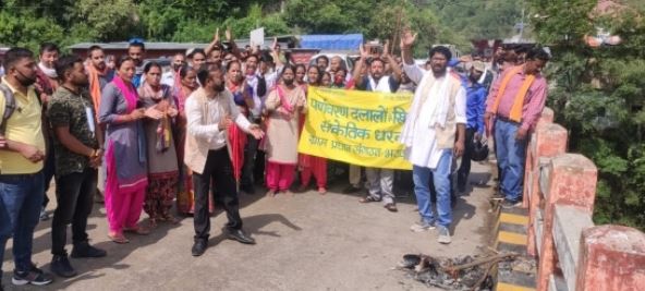 उत्तरकाशी जिले में सोमवार को गंगोत्री राजमार्ग पर भटवाड़ी स्थित पुल पर स्थानीय नोगों ने सांकेतिक धरना देकर ऐसे लोगों के खिलाफ नारेबाजी करते हुए बाकायदा पुतले फूंककर प्रदर्शन किया।