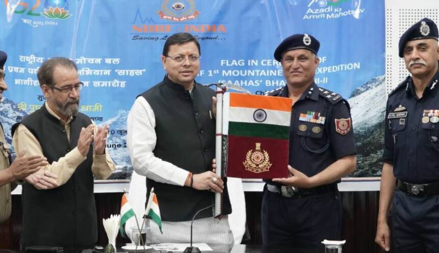 महानिदेशक एन.डी.आर.एफ अतुल करवल ने कहा कि एनडीआरएफ के प्रथम पर्वतारोहण अभियान-2023 में अभियान दल द्वारा भागीरथी-2 का 30 मई 2023 को सफल आरोहण किया। उप महानिरीक्षक एनडीआरएफ श्री गम्भीर सिंह चौहान के नेतृत्व में दल के 38 पर्वतारोही शामिल थे। उन्होंने कहा कि हल्द्वानी में एन.डी.आर.एफ की एक बटालियन स्थापित की जा रही है। इस अवसर पर विधायक श्री मुन्ना सिंह चौहान, पुलिस महानिदेशक अशोक कुमार, आईजी एस.डी.आर.एफ रिद्धिम अग्रवाल एवं एनडीआरएफ के पर्वतारोहण दल के जवान उपस्थित थे।