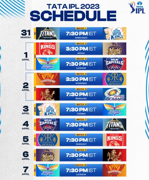 आईपीएल के 16वें सीजन का शेड्यूल शुक्रवार को जारी हो गया है। भारतीय क्रिकेट कंट्रोल बोर्ड (बीसीसीआई) ने बताया कि पहला मैच 31 मार्च को गत विजेता गुजरात टाइटंस और चार बार की चैंपियन चेन्नई सुपरकिंग्स के बीच खेला जाएगा और 28 मई को फाइनल मैच खेला जाएगा। उद्घाटन और फाइनल दोनों मैचों का आयोजन अहमदाबाद के नरेंद्र मोदी स्टेडियम में होगा।