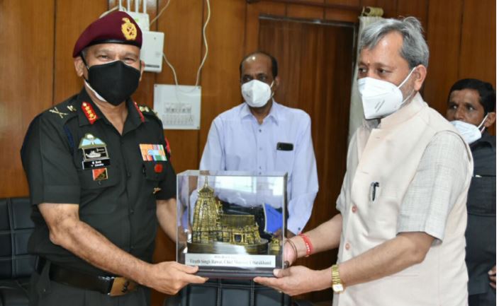 मुख्यमंत्री तीरथ सिंह से गुरूवार को सचिवालय में सेन्ट्रल कमांड के जी.ओ.सी. इंचार्ज लेफ्टिनेंट जनरल वाई डिमरी ए.वी.एस.एम, वी.एस.एम ने शिष्टाचार भेंट की। उन्होंने मुख्यमंत्री से राज्य के सीमान्त क्षेत्रों में संचार सुविधाओं की उपलब्धता एवं सडकों के विकास से सम्बन्धित विभिन्न विषयों पर चर्चा की। मुख्यमंत्री से हुई भेंट के दौरान सेन्ट्रल कमांड के जीओसी ने मुख्यमंत्री से सीमान्त क्षेत्रों में लोकल इन्टेलीजेंस की मजबूती पर भी ध्यान दिये जाने, जोशीमठ-ओली तक सडक चौडीकरण, बडकोट-पुरोला-मोरी से तथा मीनस-अराल-त्यूणी से हिमाचल को जोड़ने वाली सड़क के निर्माण एवं सुधारीकरण की भी जरूरत बतायी।